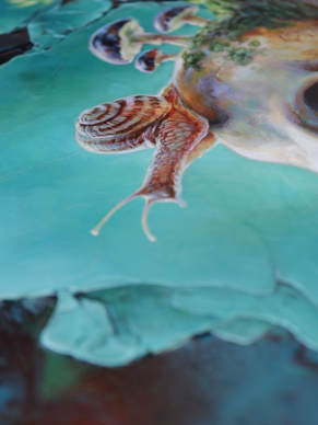 L'escargot est symbole de prudence et de sagesse, il avance, imperturbable, sur un crâne oublié.