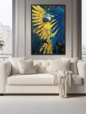 Ce fier perroquet incarne l'envol, ce besoin d'espace et d'audace qui ont traversé l'artiste dans sa démarche sincère.